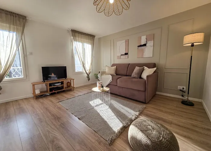 The 40 m² Le Cachemire - Confort Et Elegance - Centre Bergerac apartment is located merely 1 km from Bergerac train station and around a 5-minute walk from the Museum of Anthropology of Tobacco. Access to a golf club and a golf course is available for active guests.